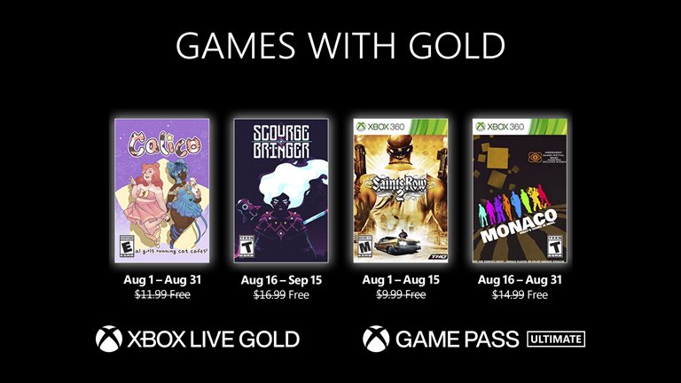 Mindezek a művek lejátszhatók Xbox One és Xbox Series X konzolokon Tapasztalt Xbox Series S. A Calico és a Saint’s Row 2 augusztus első felében, a ScourgeBringer és a Monaco: What’s Yours az enyém pedig a hónap második felében. Alább megtekintheti az Xbox Live Gold jövő hónap teljes listáját.