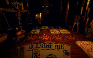 De ez még érdekesebbé válik, amikor először harcolsz az egyik főnökkel, és egyszer-kétszer meghalsz a szokásos ellenségek elleni harcban. Ebben az esetben a játék először mutat meg néhány más szempontot, és észreveszed, hogy te vagy az első olyan effektussal, aminek nyomai vannak a szélhámos stílusnak, és minden haláleset után vissza kell menned az elejére és el kell kezdened az utat. újra a térképen. Természetesen figyelembe véve azt a tényt, hogy az általános út és a benne lévő házak minden alkalommal véletlenszerűen változnak, és ennek következtében nem leszel ismételt élmény tanúja. Ezen túlmenően azt is látni fogja, hogy ebben a sötét és hátborzongató kabinban nem csak az a feladata, hogy egy asztalhoz üljön és kártyázz egy másik idegen személlyel; Inkább fel kell állni az asztal mögül, és itt meg fogod érteni, hogy ez a kunyhó maga olyan, mint egy rejtvény, és a sarkaiban különféle rejtvények rejtőznek, amelyeket meg kell oldanod.