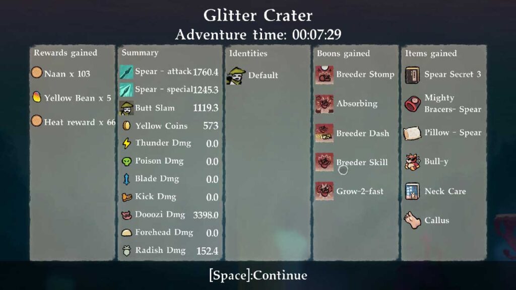 A játékmenet szempontjából a Bing In Wonderlandben a többi roguelike hagyománya szerint szakaszokon kell keresztülmenni, hogy állandó fizetőeszközt szerezzen, állandó buffokat szerezzen, felerősödjön és még sok más, de úgy érzem, hogy a frissítések kissé kiábrándítóak. 5 különböző fegyver közül választhat – íj, lándzsa, fejsze, ágyú és hárfa. Bosszantónak találtam ezt az ágyút, mert ez az egyetlen fegyver, ahol el kell helyezni a lőszert.