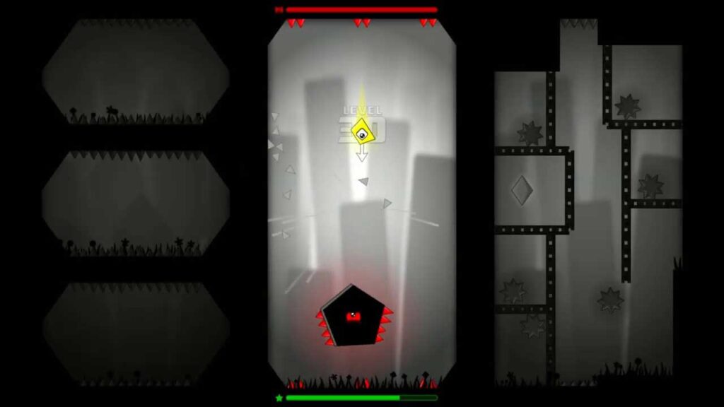 Az egyik dolog, amit nagyon szerettem ebben a játékban, a viszonylag egyedi grafikája, amely bizonyos szépséggel bír. A grafika viszonylag alapvető geometriai formák, stílusos és élénk színekkel, amelyek vonzó megjelenést kölcsönöznek a játék világának. A sötét hátterek használata és az előtte lévő színes elemek kombinációja gyönyörű hatást kölcsönöz képernyőjének, amely egyáltalán nem lesz unalmas. De a háttérzene hiánya jól érezhető, és bárcsak több dal lenne a játékban.