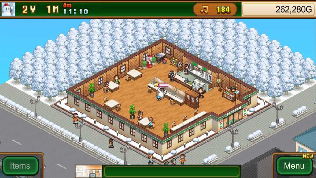 A “Cafe Master Story” egy másik pixel stílusú üzleti szimulációs játék, amelyet a Kairosoft fejlesztett ki. Szóba került ez a cég, ami igazán tehetséges a szimulációs játékok fejlesztésében, és mindent szimulálni tud, és úgy gondolom, hogy nem kell bemutatni ezt a híres fejlesztőt. A cég által gyártott termékek többsége valóban kiváló minőségű cím, amelyet gyakran adnak ki mobileszközökre, Nintendo Switchre és PC-re.