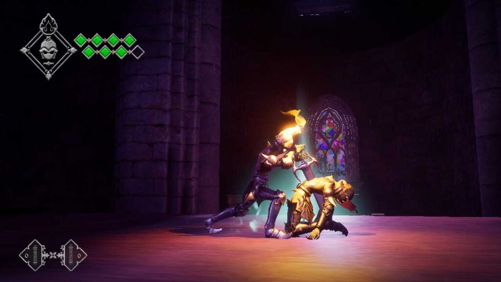 Bár a kastélyt szürke ködfal tagolja részekre, a köztük lévő rakodási idő gyors és alig észrevehető. A szakaszok logikailag összefüggenek, ami azt jelenti, hogy a kimenetek és a bemenetek egyeznek. Sok olyan játék létezik, ahol kilépsz egy szobából, és elkezded a következő szintet egy erdőben anélkül, hogy megmagyaráznák, hogyan kerültél oda. A csészék mentési pontokként működnek a Candle Knight játékban. Mindig az utoljára felgyújtott hely közelében ébredsz újra, ezért előtte mindenképpen aktiváld őket, és a legjobb, ha azonnal megteszed. Mert nem akarsz több poharat visszahozni és időt vesztegetni.