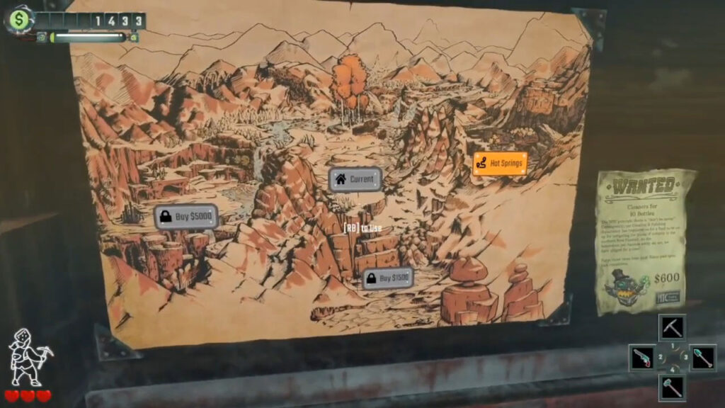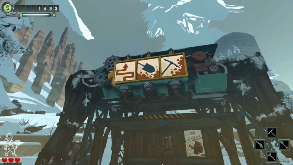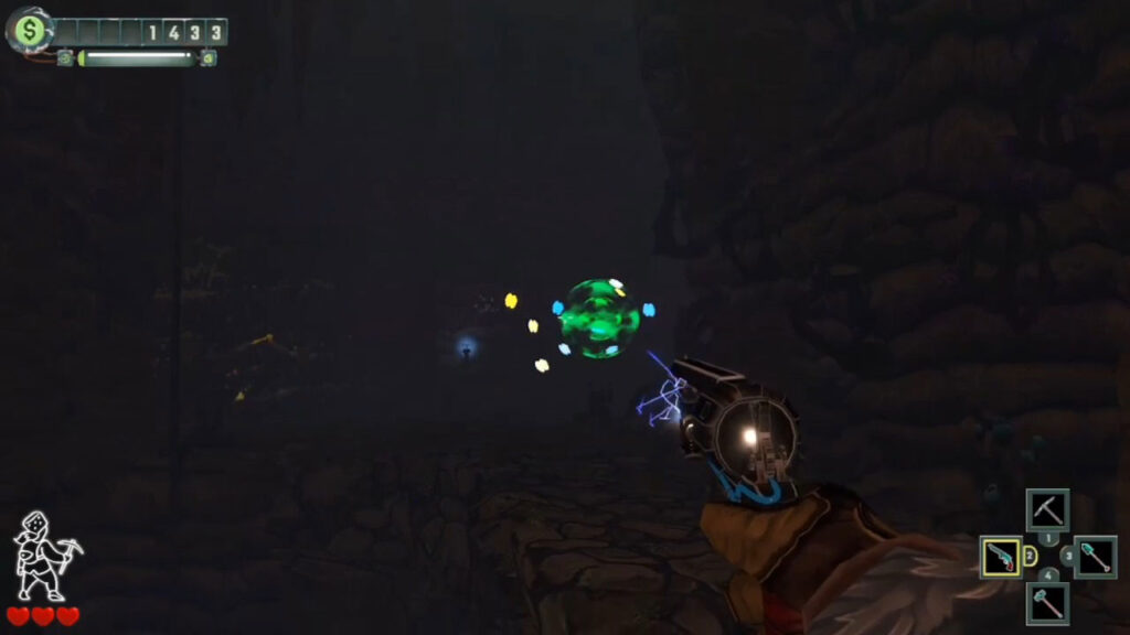 Van egy terület a bányák felső végén, ahol árukat adhat el és frissítheti a területet. Szerezzen be új eszközöket. és így tovább. Ezután lifttel egy új barlangrendszerhez száll, és további anyagokat gyűjt az eladásra. Amíg lent találkozhatsz ellenségekkel, akiket a puskájával kivehet. Vannak dolgok, amelyek megtámadnak közelharcban, vannak, amelyek nagy hatótávolságúak, és vannak, amelyek felrobbannak.