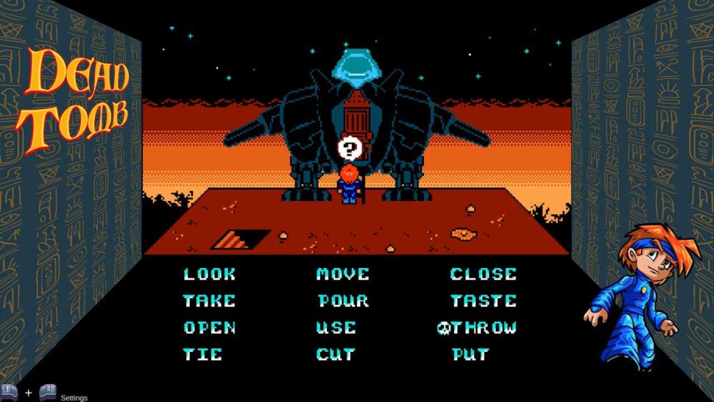 A játék alján egy sor ismerős parancs található, amelyek akkor jelennek meg, amikor elérünk egy tárgyhoz, és egy kérdőjel jelenik meg a főszereplő feje fölött. Ide tartoznak az olyan konkrét műveletek, mint a „mozgatás” és a „nézd”, amelyek mindegyike meglehetősen ismerős. Sok próbálkozásra és hibára van szükség ahhoz, hogy rájöjjünk, hogy pontosan mit kér a játék.