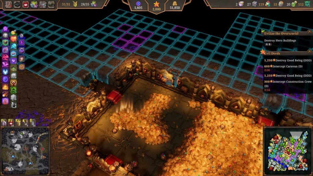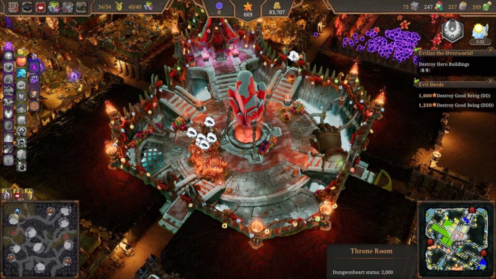 Minden egyes futásod két térképtípusra oszlik: Overworld és Dungeon réteg. Az előbbit RTS-ként játsszák, míg az utóbbi a bázisépítésre összpontosít. A kombináció úgy működik, hogy nem érzi teljesen széttagoltnak magát, azonban néha frusztráló lehet, ha csak a túlvilágban lévő lényeket tudja irányítani. Jobb lett volna, ha a fejlesztők a kettő közötti vezérlők szabványosítására összpontosítottak volna.