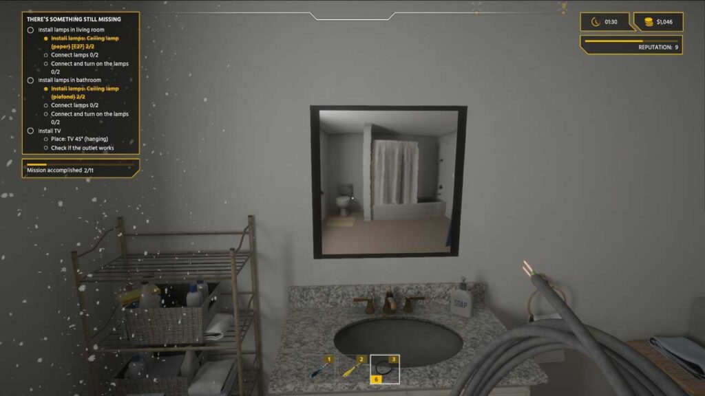 A villanyszerelő szimulátor egyszerű játékmenettel rendelkezik, amely alapvetően kétféle feladatot oszt ki: vagy a dolgok javítását, ami a dolgok szétszedését és a törött alkatrészek cseréjét jelenti (például hajszárító vagy kézi konzol javítása), vagy hazautazás, kábelek és aljzatok. Meg kell tanulnia az elektromosság alapvető ismereteit és működését. A megfelelő tanúsítvány kézhezvétele után egy sor feladatot végezhet el a számítógépen. A legegyszerűbb feladatoktól, mint például a villanykörte cseréje, a bonyolultabb aljzat-bontáson és -javításon át a tűz- és földelővezetékek bekötéséig természetesen minden művelethez először a főkapcsolót kell kikapcsolnia a játékosnak, ami nagyon fontos.