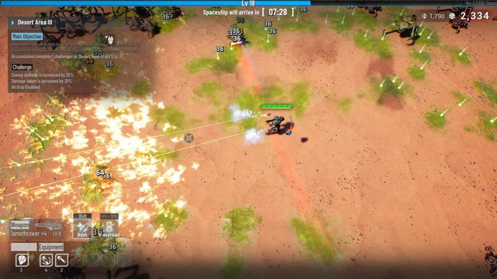 A játék legelső pillanataitól kezdve a Greedland ellenségek hordáival veti bele magát a harcba, gyors reflexeket és folyamatos alkalmazkodást igényelve. Az alapvető játékmenet egyszerű, de hihetetlenül hatékony. Egy alapfegyverrel kezdesz, és egyre sűrűbb idegenhullámokon harcolsz, miközben erőket és pénzt gyűjtesz felszerelésed és képességeid fejlesztésére.