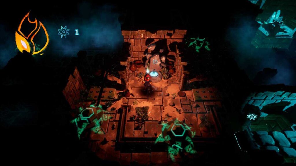 A történet alapvetően teljesen irreleváns a játék szempontjából, és véleményem szerint rosszul van bemutatva és unalmas. De nem a történetért játszol Guayotával, hanem a rejtvényekkel, és el kell ismernem, hogy ezek nagyon kemények, még akkor is, ha mindig csak bizonyos eszközök megvilágításáról van szó, és ezáltal ajtók kinyitásáról vagy hidak aktiválásáról. Ahogy haladunk a rejtvényen, aktívabb eszközökre van szükség az aktiválásukhoz, ami a rejtvényterem bonyolultságának és nehézségeinek folyamatos növekedését eredményezi.