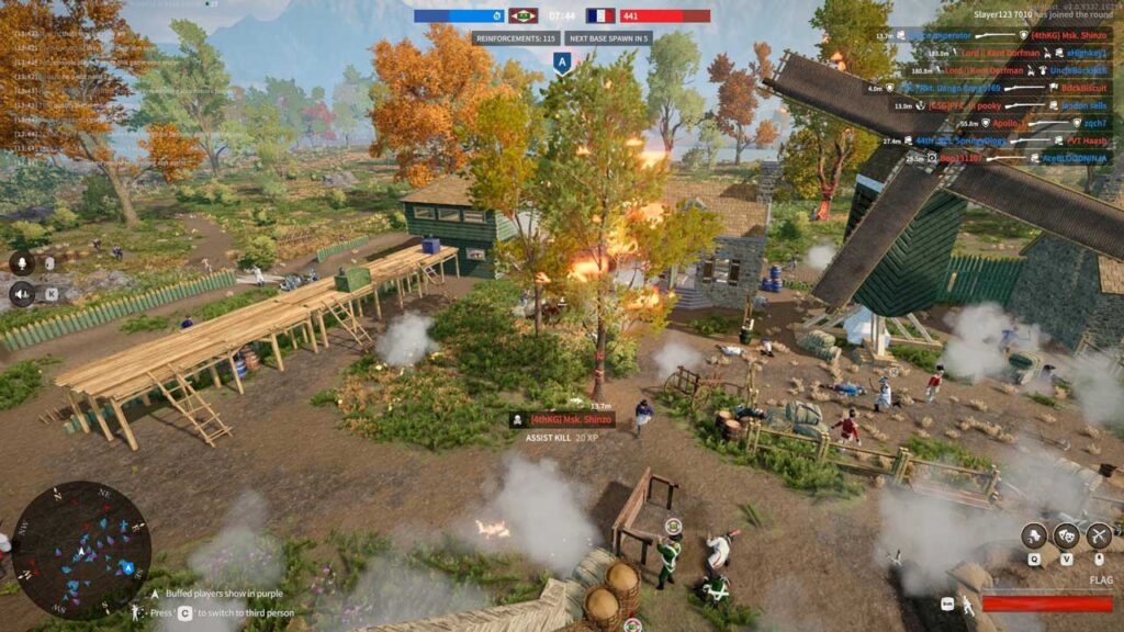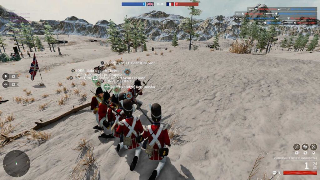 Másrészt a szinkron ebben a játékban hihetetlenül jól sikerült. Vannak támogató kasztok, amikkel játszhatsz, mint például a Dobos, a Hegedűs, a Fife stb. Mindegyiknek meglehetősen nagy gyűjteménye van korhű katonai darabokból (pl. a Bátor Skót), amiket a csapatodban játszhatsz. A zenész kasztok valójában létfontosságú szerepet játszanak, mivel mindenkire erősítést adnak, aki hallótávolságon belül van, és az ugyanazt a dalt játszó zenész kasztok kombinációja növeli az erősítési százalékot. Sajnos a játékon belüli hangcsevegés hozzáadásával a mikrofonon keresztüli zenelejátszás egyre gyakoribb, de ha akarod, elnémíthatod az egyes játékosokat.