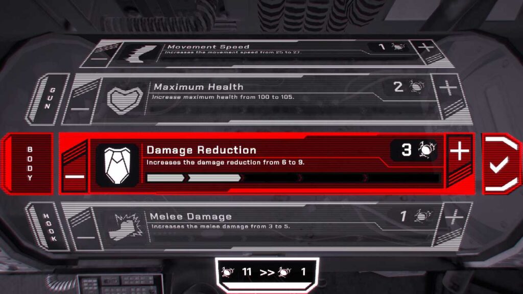 Ennek a játéknak a roguelite aspektusa a szokásos módon működik, és miután megölnek, visszateleportál az elejére, és felhasználhatja a futás során összegyűjtött pénznemeket különböző statisztikák frissítésére. Sokat kell fejleszteni, így még ha meg is halnak, akkor sem érzi úgy, hogy nincs előrelépés.