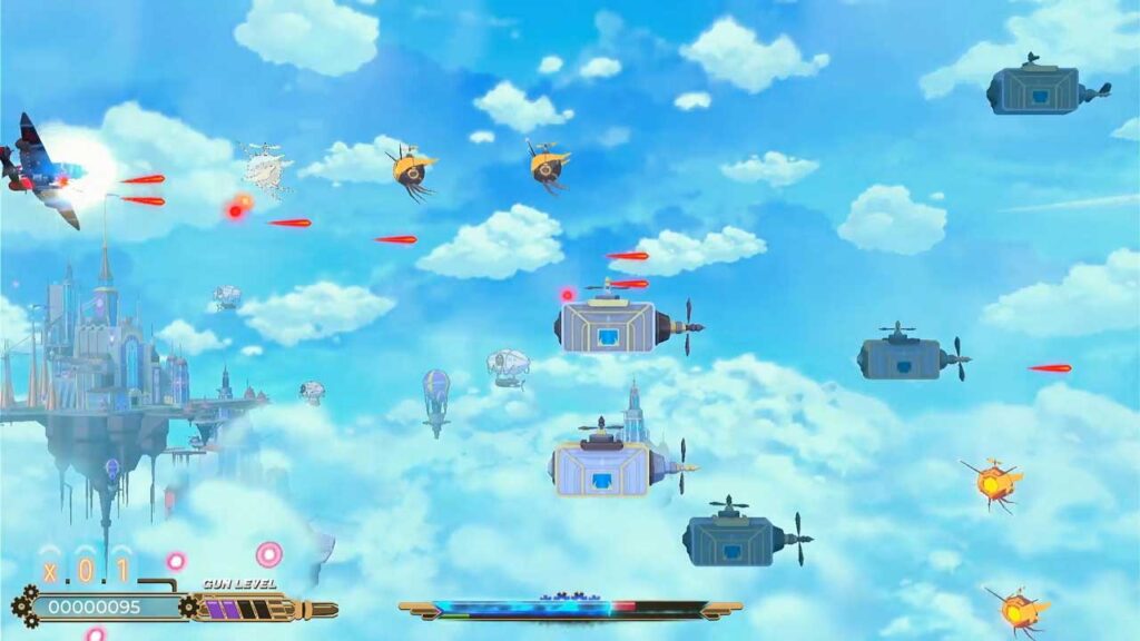 Ahogy repülsz és kerülgeted a lövedékeket, egy csomó power-up-ot gyűjtesz össze, amelyek lehetővé teszik a tűzerőd növelését, műholdtornyok telepítését és egy erős lézerlövés leadását, amikor a sáv megtelik. A légi harc ebben a játékban valójában sokkal változatosabb, mint más játékokban, például a Subverse-ben, a két karakter eltérő erejével és képességeivel, több szinten pedig olyan speciális trükkök vannak, amelyek csak az adott szinten érhetők el, mint például az idő lassítása vagy mindkét karakter különleges képességeinek használata. Az ellenségek és szörnyek tekintetében elég változatos volt a játék ahhoz, hogy érdekes maradjon.