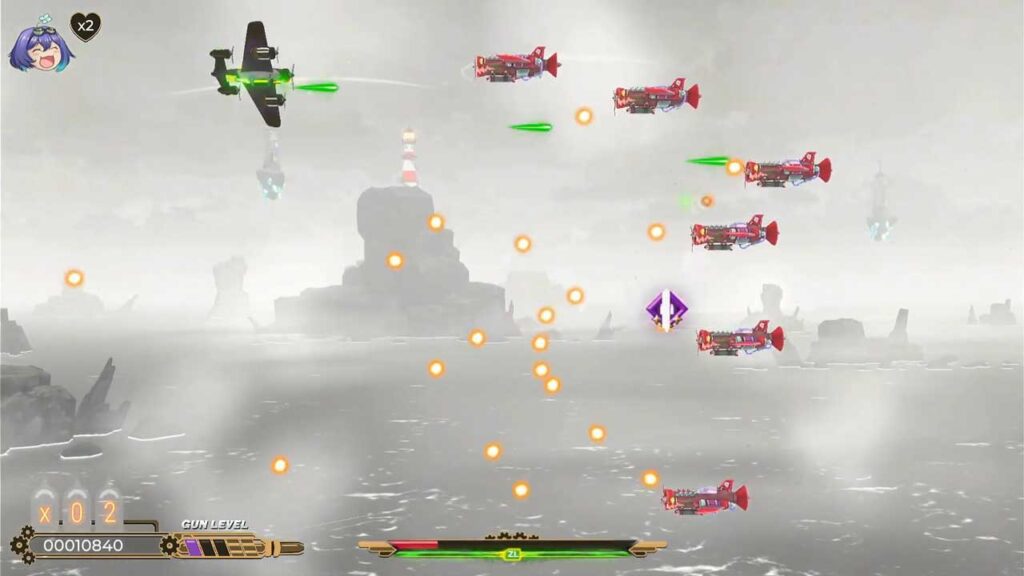 Ahogy repülsz és kerülgeted a lövedékeket, egy csomó power-up-ot gyűjtesz össze, amelyek lehetővé teszik a tűzerőd növelését, műholdtornyok telepítését és egy erős lézerlövés leadását, amikor a sáv megtelik. A légi harc ebben a játékban valójában sokkal változatosabb, mint más játékokban, például a Subverse-ben, a két karakter eltérő erejével és képességeivel, több szinten pedig olyan speciális trükkök vannak, amelyek csak az adott szinten érhetők el, mint például az idő lassítása vagy mindkét karakter különleges képességeinek használata. Az ellenségek és szörnyek tekintetében elég változatos volt a játék ahhoz, hogy érdekes maradjon.