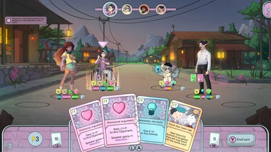 A kártyacsaták „vitákként” vannak csomagolva, lehetővé téve a játékosok számára, hogy kasztok közötti csapatokat alkossanak (a táncos, festő és szakács kombinációja meglepően hatékony), és kártyák segítségével rávegyék a különböző frakciókat, hogy egyesítsék erőiket a varázslatos világ megmentése érdekében. A kudarc büntetése hihetetlenül enyhe – csak az aktuális térkép áll vissza, míg a feloldott kártyák és a gyűjthető babák megmaradnak, így hihetetlenül kezdőbarát.
