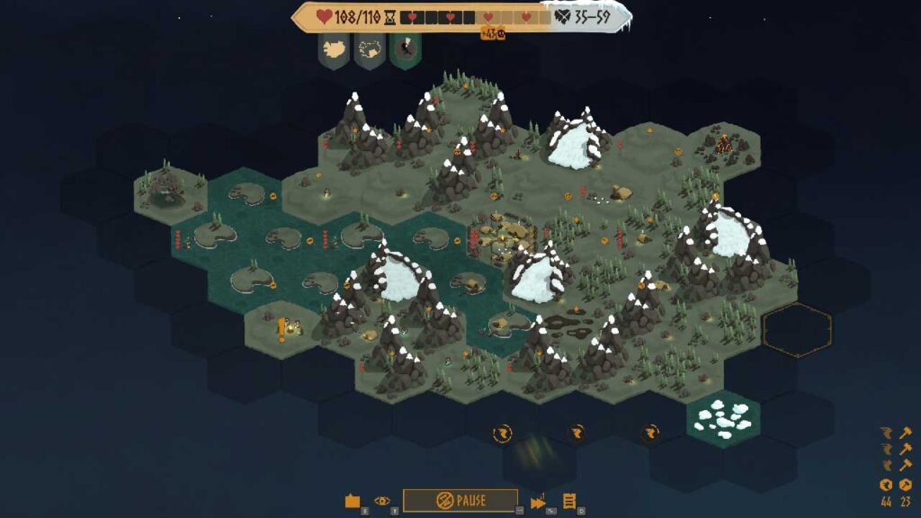 Számomra legalábbis ennek a játéknak az értékajánlata a felfedezés – természetesen a térkép felfedezése, de a mechanika, a különböző klánok, az érdekes buildek, a különböző szinergiák stb. Végül azonban nincs szinergia. Valójában csak egy klán van, valójában csak egy gól, és csak egy saga, amit várhatóan újra kell játszani. Elméletileg több klán létezik, de ezek nehézségi módosítóként működnek, nem játékmenetként.