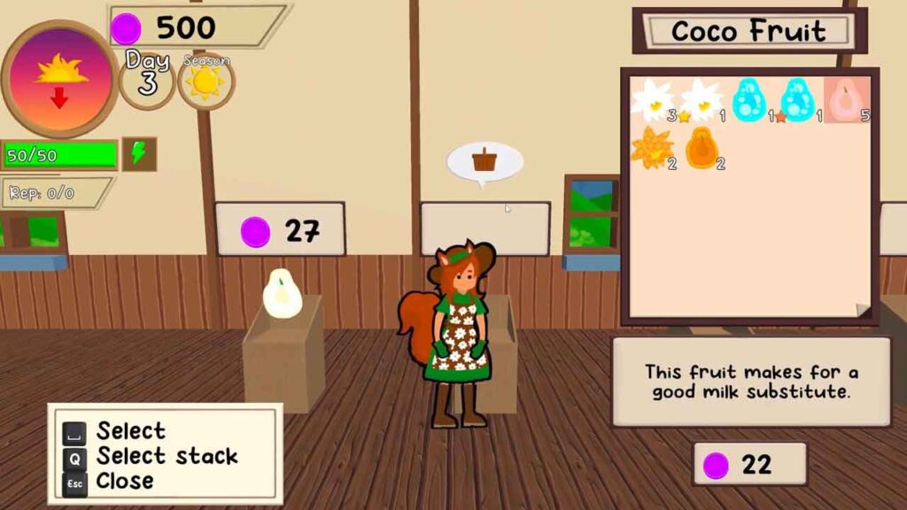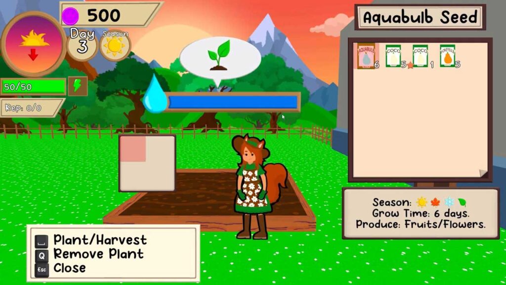 A Lucie’s Potager egyik érdekes játékmenete az évszakok váltakozása. A játék egy dinamikus, folyamatosan változó 2D-s világban játszódik, ahol az évszakok jönnek-mennek, a napok pedig repülnek. Ráadásul a játék napjai rövidek, és csak idő kérdése, hogy mikor fekszel le, hogy feltöltsd az állóképességed. Ennek a játéknak van egy térképe, amely nagyon hasznos a város különböző részeibe történő mozgás ellenőrzéséhez. A térkép felfedezése közben akár 3-4 értékes tárgyat is találhat az egyes területeken. Ahogy felfedezed a térképet, új karakterekkel találkozhatsz, akikkel beszélgethetsz, és mellékküldetéseket kaphatsz.