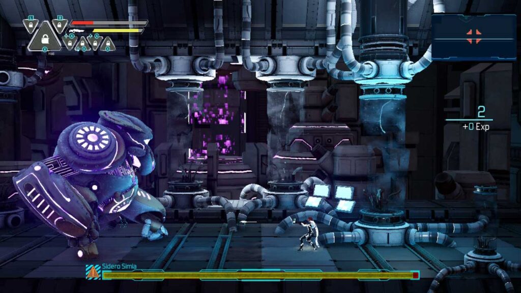 Másrészt a játékmenet nagyon gördülékeny, független forgatási cselekményekkel. Más szóval, az egyik analóg bottal az egyik irányba mész, a másikkal pedig oda lősz, ahol csak akarsz. A játékmenet nagyon jól összekapcsolja a felfedezést, a küzdelmet és a teljesítménynövelést. Ahogy az a többi Metroidvania játéktól elvárható, a MARS 2120 segítségével visszatérhetsz a már meglátogatott területekre, új képességekkel felszerelve, hogy új utakat nyithass meg. Anna új fejlesztésekre képes a tűz, jég és villám elemek alapján.