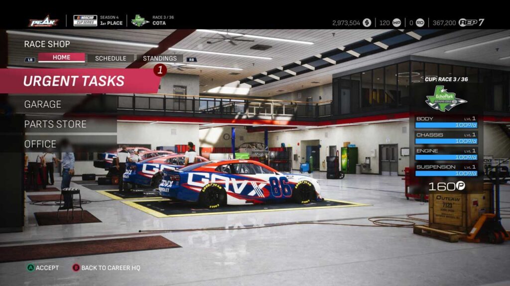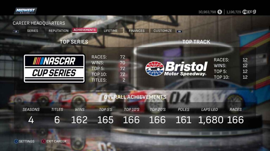 A Karrier módban körülbelül 150 valódi, licencelt NASCAR pilótát találunk, és benne van az összes csapat, valamint az összes autó. Az elején kiválaszthatsz egy pilótát, a festését és az autóját, majd a játék többi része csak a versenyek közötti ugrálásról és a győzelem megkísérléséről szól. Szerintem ez a mód részletesebb, és a legnagyobb panaszom az, hogy “hanyagnak” tűnik, és a meglévő csapatokhoz való szerződtetés hiánya egy olyan tulajdonosi szerepbe kényszerít, amit nem mindenki akar mindig betölteni.