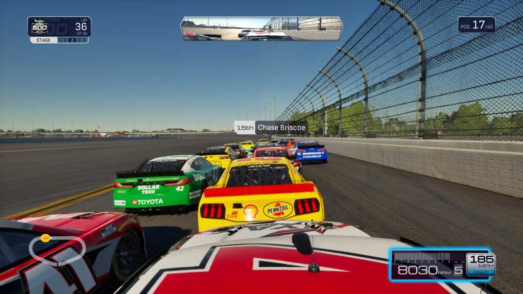 Véleményem szerint a NASCAR 25-ben a legnagyobb fejlesztésre szoruló dolog a vezérlő/kormányzás visszajelzése. A kormányon sokkal több visszajelzést kapunk, ami tudatja velünk, hogy mi történik az autóval, de még mindig vannak olyan esetek, amikor ez a visszajelzés hiányos, különösen az egyenesekben. Az olyan pályákon, mint a Rockingham, a bukkanókban és a Watkins-Glenhez hasonló pályák kanyarain még mindig sok a javítanivaló az FFB-vel.