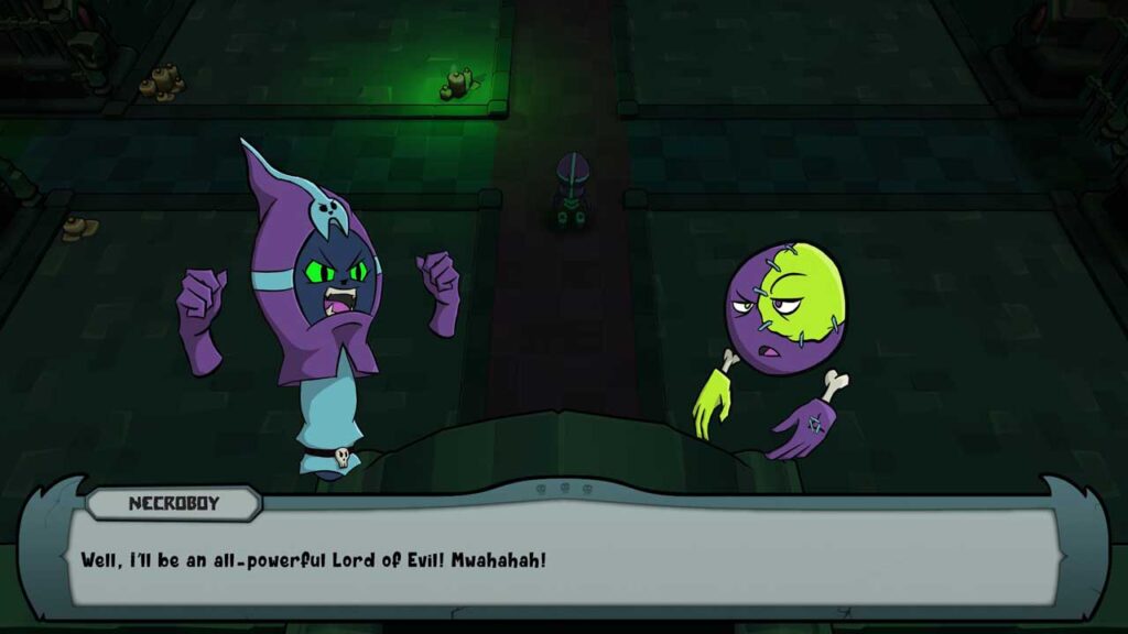 Először azt gondolhatod, hogy ezeknek a dolgoknak a végrehajtása egy idő után nagyon unalmas lesz, de azonnal rájössz, hogy a játék mechanikája jól működik, mert a minionok útja jól meg van csinálva, és aktiválni is lehet őket arra, amit akarsz. maga. Át kell vezetned NecroBoyt a sír veszélyes sötétségén, elkerülve a tüzet, a csapdákat és a főnököket.