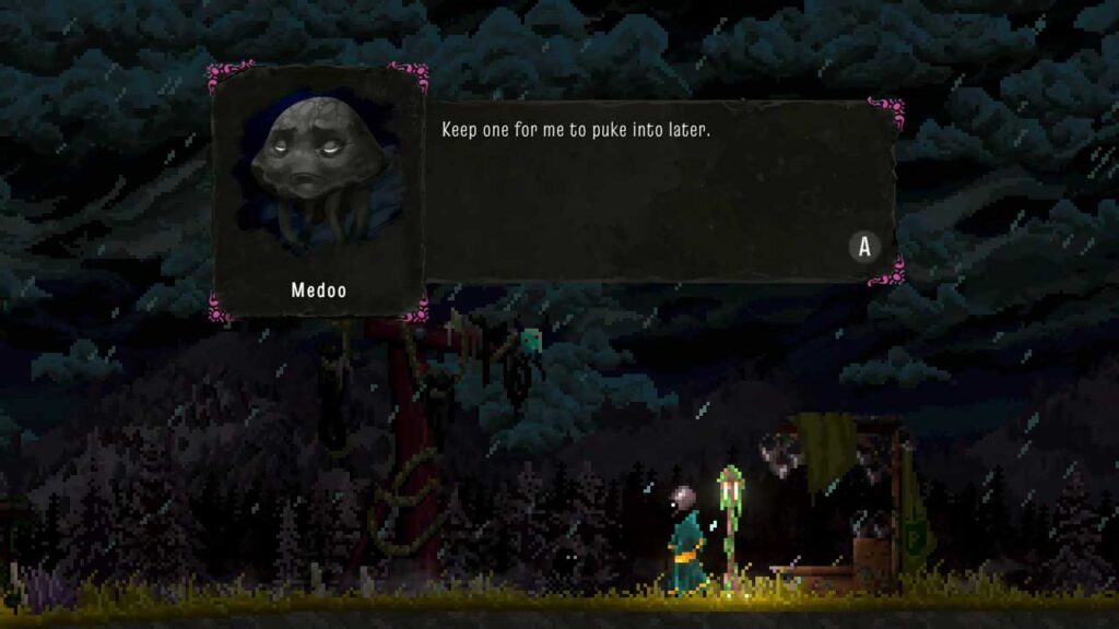 Az egyetlen dolog, amit visszajelzésként hozzá tudok tenni, az az, hogy a Medoo-nak gyorsan kellene tudnia mozogni; Mert jelenleg a játék visszafelé haladása és felfedezése nagyon kellemetlen, mert hiányzik belőlük a következetesség (több párbajra vagy csoportra van szükség ahhoz, hogy élvezni lehessen; bár ez csak az én személyes véleményem), és azt tanácsolom, hogy fogyóeszközöket: üvegeket és gombákat használjunk sebességnövelőként.
