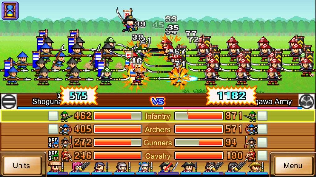 Ennek a játéknak a grafikája ugyanaz, mint a többi Kairosoft játéké, és nincs semmi újdonság. Bárcsak a fejlesztők legalább egy új művészeti stílust alkalmaznának, de a játékvilág épületeinek és részleteinek hűsége az ókori Japánhoz valóban figyelemre méltó. Természetesen a pixeles harci egységek harci pillanatait is nagyon szórakoztató nézni, és tetszik, hogy a fegyver- és páncélváltásaid is meglátszanak a kis harcosokon. A filmzene is ismerősnek tűnik, és talán hasonlít az Oh! Edo Towns hallotta. De nincs semmi bosszantó, és még a hangeffektusok és a felhasználói felület is olyan, mint az előző játékokban.
