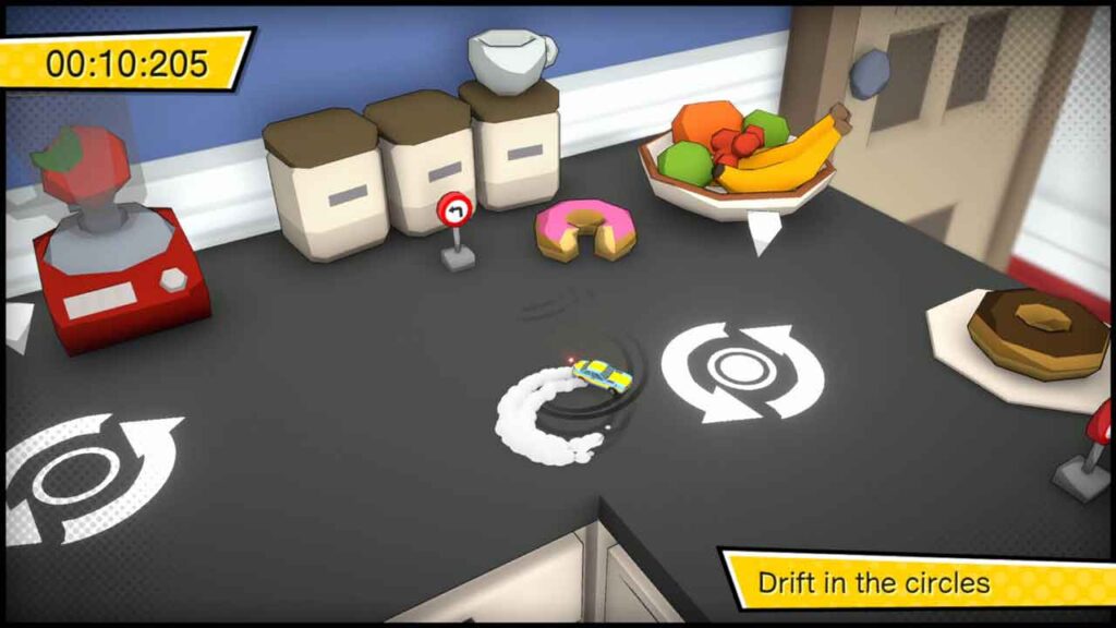 Ez a játék egy vezetési oktató szerepét tölti be, ahol vezeti az autót, ütközik akadályokba és fékez, amikor csak akar. Te irányítasz egy miniatűr autót, amellyel olyan játékversenyeken kell részt venned, amelyeknek minden szakaszában különböző célokat tűznek ki az Ön számára. Minden szakasznak más-más mechanikája van, a sodródástól a léggömbök és egyéb akadályok, például közlekedési táblák és dominók megsemmisítéséig. Ez a játék csak egy egyjátékos szekcióval rendelkezik, és 32 különböző kihívást kínál a játékosoknak, amelyek mindegyike szintezett. Minden szakasz nyolcra van osztva négy különböző nehézségi fokozatban.