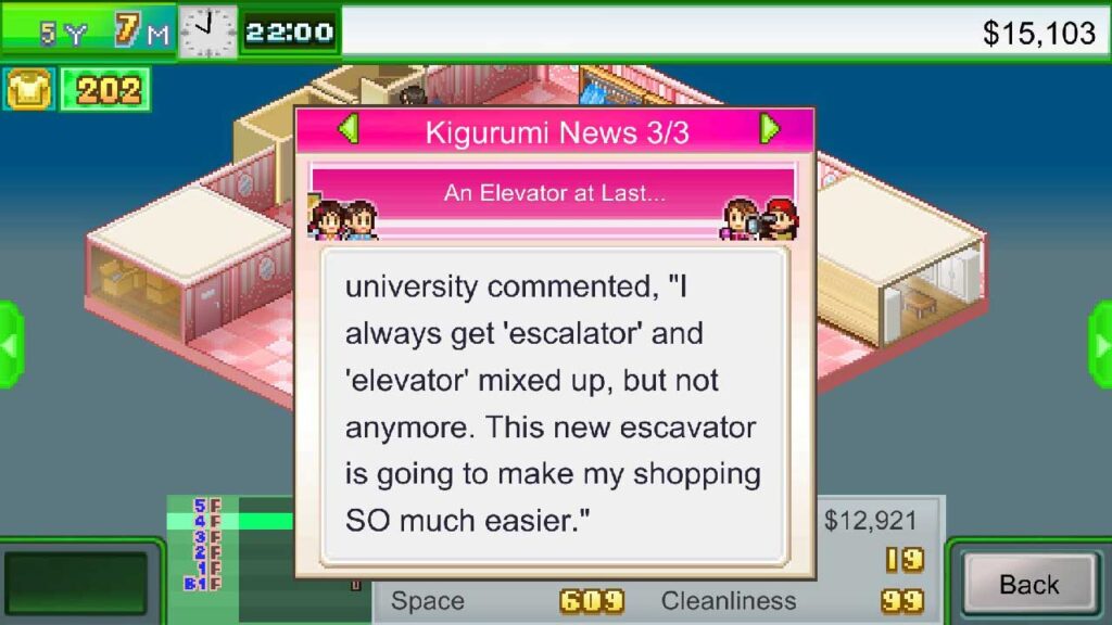 Ha csak egyféle ruhadarabot ad el anélkül, hogy minden korosztályt figyelembe venne, a ruhaüzlet üzlete drasztikusan visszaesik, sőt csődbe is megy! Addig is fel kell venni néhány alkalmazottat, és különféle tréningekkel fejleszteni a képességeiket, hogy jobban ki tudjanak szolgálni minket és több aranyat kereshessenek. Végre ruhaüzletünk legyen az ország ruhagyártója!