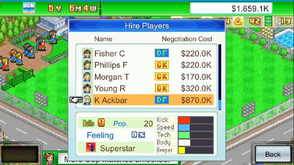 A Kairosoft összes mobiljátéka erősen addiktív, így a Pocket League Story alapvetően ugyanazt az élményt kínálja. Ez egy olyan játék, ahol játékosokat vásárolsz, darálsz, megtalálod a játékmenet hurkolt mintáját, és amint kitalálod a mintát, és elérsz egy bizonyos szintű sikert, kilépsz. Ugyanez volt a Pocket League Story 2 és a Pocket Basketball Club esetében: legyen szupersztárokból álló csapat, miközben nyereséges menedzser.