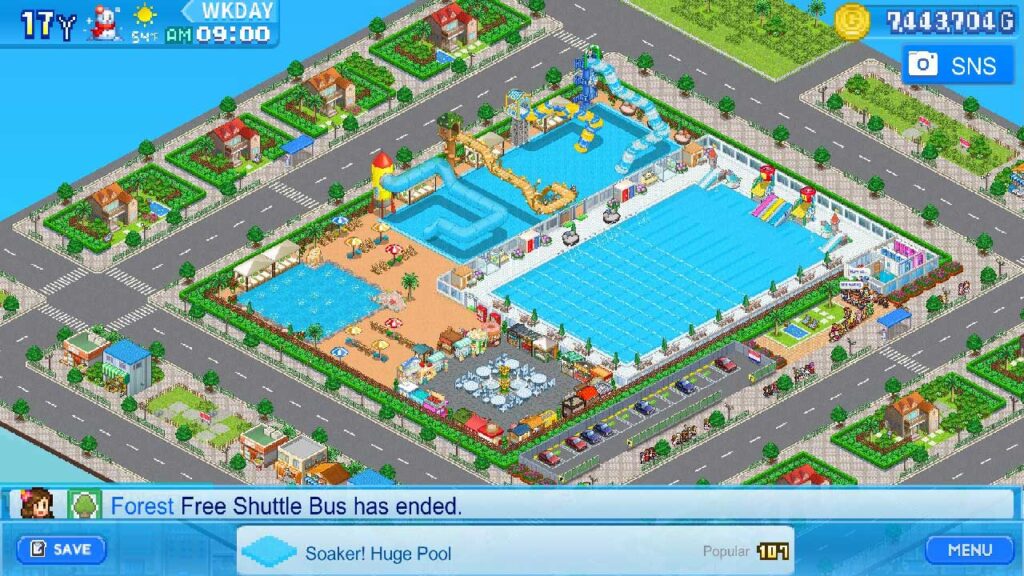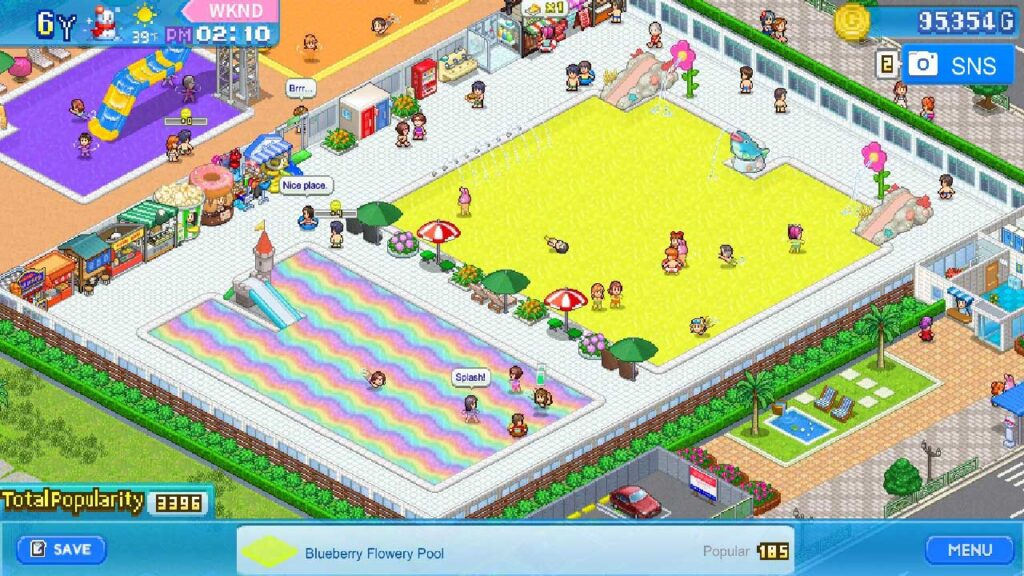 Az általános játékmenet a Kairosoft folyamatosan kiváló gyártási szabványainak örököse. Amit ezúttal végre kell hajtanunk, az egy vízipark, kezdjük uszoda építésével, és a vízipark körül némi étellel és dekorációval, valamint érdekesebb épületeket építünk, ahol vendégeink játszhatnak. Lépésről lépésre a mi kis paradicsomunkat a legkülönlegesebb nyári üdülőhellyé varázsoljuk.