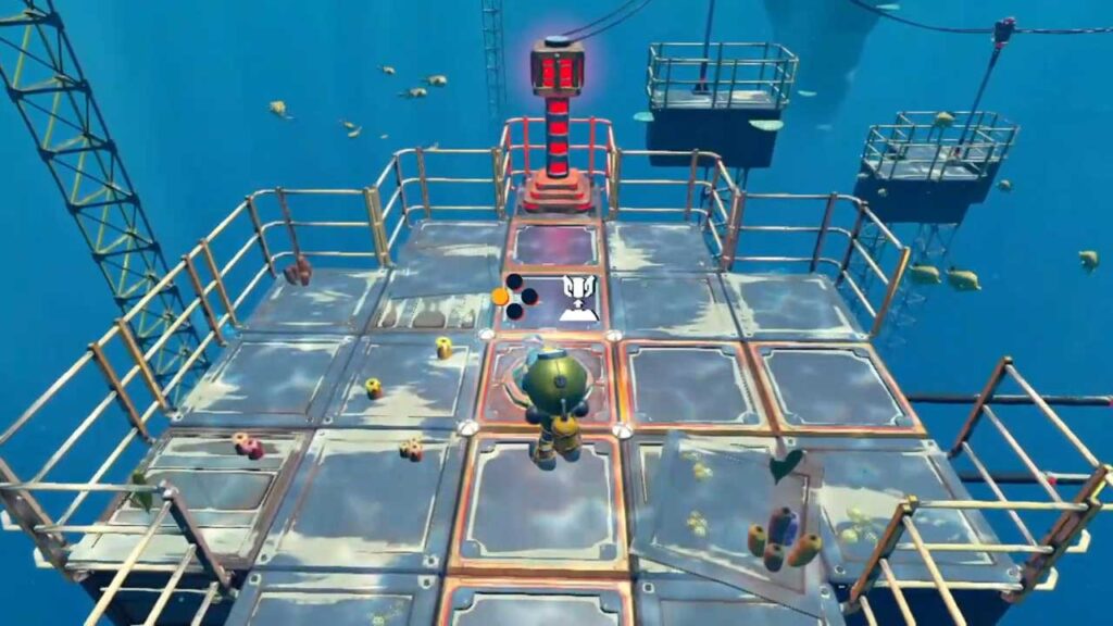 A játék kihívása nem a bonyolult irányításban rejlik. A képességeid egyszerű mozdulatokra, ugrásra és tárgyakkal való interakcióra korlátozódnak. A nehézséget inkább a műveletek helyes sorrendje adja. Gyakran be kell kapcsolnod bizonyos rendszereket egy adott sorrendben, mozgatnod a gömböket a komplex platformjátékokban, és néha deaktiválnod kell egy rendszert, hogy aktiválj egy másikat. A padlólapok segítenek megérteni, hogy milyen erővel bírnak az egyes konténerek, ami szép vizuális részleteket ad a játékhoz, különösen ahogy mélyebbre jutsz.