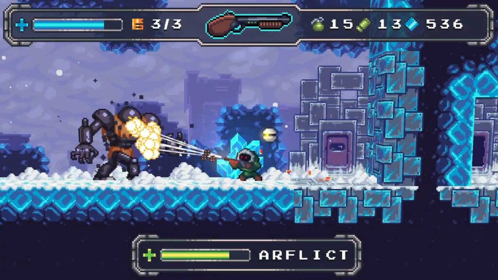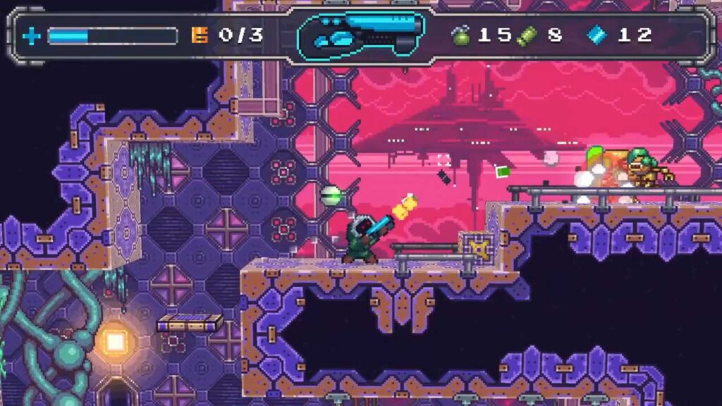 Ebben az akció-platformjátékban egy űrvadász szerepét öltöd magadra, aki egy elit csoporthoz tartozik, amely a “SFERA” néven ismert gazember robotok felkutatására specializálódott. Ez nagyjából az összes narratíva, amit kapsz, és őszintén szólva, ez minden, amire szükséged van. A játék nem vesztegeti az idődet a saját történetével, mivel minden a játékmenetről szól. A rövid bevezető egyszerűen okot ad arra, hogy felkapd a fegyveredet, és elkezdj mindent lőni, ami az utadba kerül.
