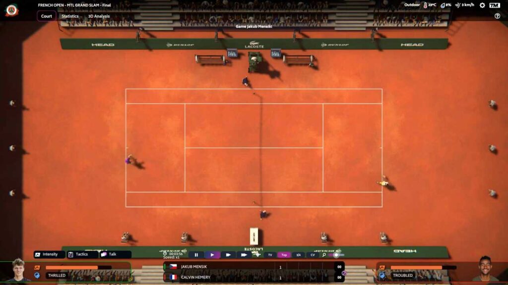 A játék a kezdetektől fogva elmerít a profi tenisz dinamikus világában, ahol minden döntés számít. Legyen szó a legjobb játékosok toborzásáról, az edzések tervezéséről, a klub pénzügyeinek irányításáról vagy a megfelelő meccsstratégiák kiválasztásáról, minden szempontot gondosan megterveztünk, hogy hasznos stratégiai mélységet biztosítsunk. A Karrier mód nagymértékben tovább lett javítva ebben a verzióban, és az alapértelmezett beállításoknak köszönhetően mostantól elkezdheti csapatkezelési feladatát.