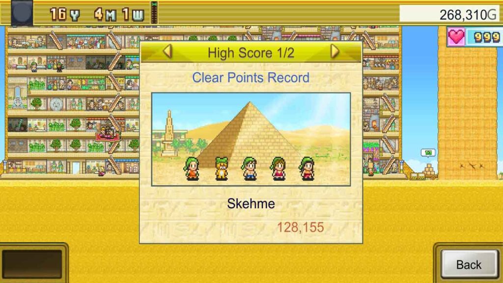 Utazz a titokzatos ókori Egyiptomba, és válj piramisokat építő fáraóvá, de ezúttal neked kell megépítened Egyiptom első kereskedelmi utcáját! Itt újraalkotjuk az ókori egyiptomi civilizációt, és egy példátlan piramist építünk. Néhány játékos úgy gondolja, hogy ez a játék kissé nevetségesnek tűnik, mivel azt a küldetést kapod, hogy építs egy piramist az ókorban, de mégis töltsd meg irreleváns üzletekkel és létesítményekkel. De nekem tetszik ez a furcsa téma, mert a Kairosoft általában ezen a területen ragyog.