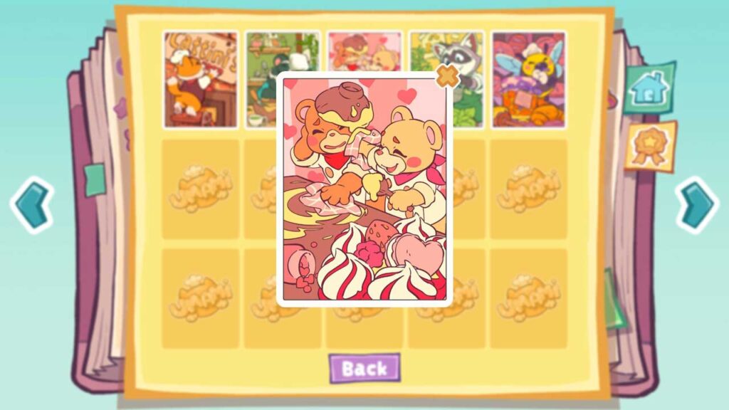 A játék 15 kirakót kínál, amelyek mindegyike nagyjából 20 perces, és mindegyik egy kis gyűjthető tárgyat rejt valahol a háttérben. Ez egy szórakoztató, könnyed felfedezési réteg, amely arra ösztönöz, hogy lassíts, és akár élvezd a környezetben szétszórt apró dekorációkat. Minden szakaszban van egy nagyon aranyos állat is, amely az ételen ül, és mindegyiket megsimogatni is igazi teljesítmény.