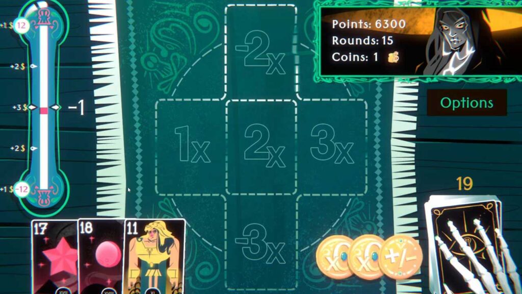 A XIII. Tarot utolsó játéka eleinte nagyon nagylelkű, ezért tegyél meg mindent, hogy érméket gyűjts a későbbi körökre. Az érmék vásárlásával szerzett erős tárgyak a szerencse irányításának eszközeiként szolgálnak, lehetővé téve, hogy a táblán lévő kártyákat váltogasd, és stratégiailag kezeld az erőforrásaidat, hogy növeld a pontszámodat és tovább juss, mint korábban.